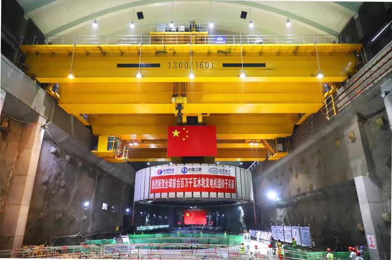 8月18日,三峽集團(tuán)白鶴灘水電站左岸1號機(jī)組轉(zhuǎn)子在太重生產(chǎn)的兩臺1300噸橋機(jī)并車抬吊牽引下緩緩上升,拉開了世界首臺單機(jī)容量100萬千瓦水輪發(fā)電機(jī)組轉(zhuǎn)子吊裝的序幕。經(jīng)過約300米的水平移動后,轉(zhuǎn)子安全平穩(wěn)落入1號機(jī)組機(jī)坑,實(shí)現(xiàn)了與發(fā)電機(jī)軸的精準(zhǔn)對接。該轉(zhuǎn)子外圓直徑約16.2米,最大高度約4.1米,起吊重量達(dá)2100噸,是機(jī)組安裝過程中重量最大的核心部件。為了轉(zhuǎn)子等重要設(shè)備安裝、起吊過程的安全、穩(wěn)定,三峽集團(tuán)選擇了長期合...